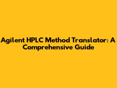 Agilent HPLC Method Translator: A Comprehensive Guide