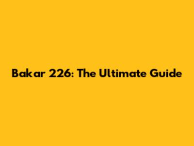 Bakar 226: The Ultimate Guide