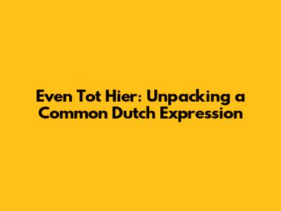 Decoding "Even Tot Hier": What Does It Really Mean?