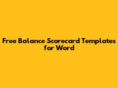 Free Balance Scorecard Templates For Word