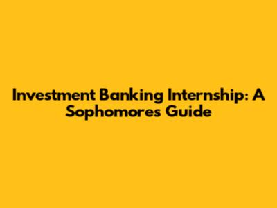 Investment Banking Internship: A Sophomore's Guide
