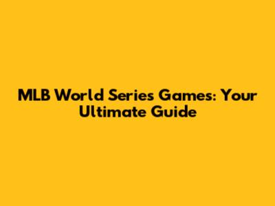 MLB World Series Games: All You Need To Know