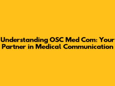 Understanding OSC Med Com: Your Partner in Medical Communication