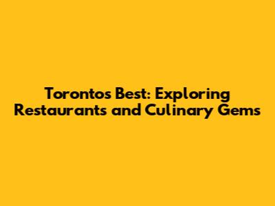 Toronto's Best: Exploring Restaurants And Culinary Gems