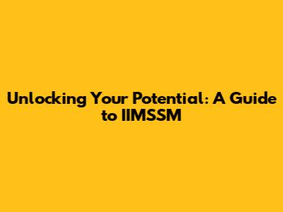 Unlocking Your Potential: A Guide To IIMSSM