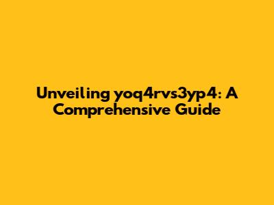 Unveiling Yoq4rvs3yp4: A Comprehensive Guide