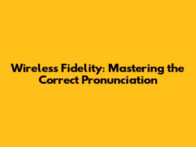 Wireless Fidelity: Mastering The Correct Pronunciation